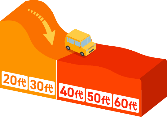 • ※2 事故率の低い世代の保険料が本商品内、同条件・他世代との比較において割安となっています。