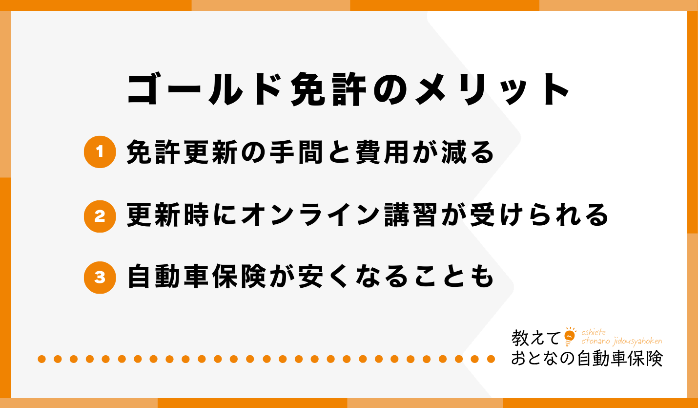 コ゚ールド免許取得者には、優良なドライバーの証としてさまざまな優遇措置が設けられています。ここでは3つ紹介します。