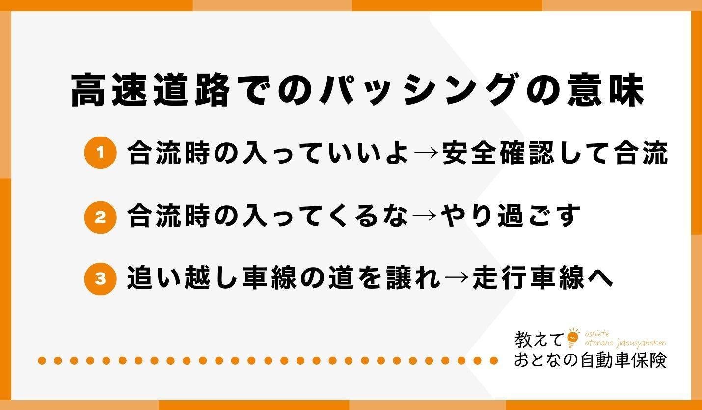 高速道路においては、合流や追い越し車線での合図としてパッシングが使われるケースが考えられます。